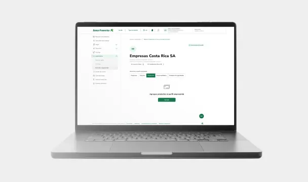 b) Si algún producto no aparece, puede modificar la configuración actual o agregar nuevos productos desde la sección Productos en la configuración del Perfil Empresarial.